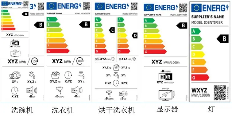 2019年3月11日, 欧盟委员会通过的6大类产品新能效标识的最终样式和外观,包括: