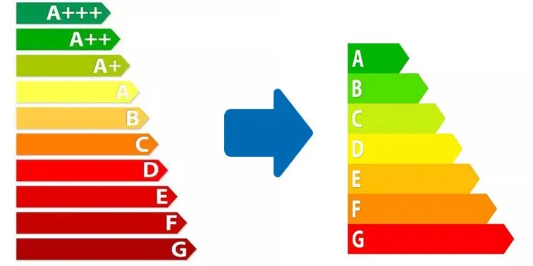 旧版能源标签已经不会能满足产品能效提升的速度,最初的低能效等级的产品(即E, F, G等级)已基本消失。然而,这样的进步却给消费者在选择产品时带来了困难:他们可能会认为A+能效等级的产品是市场上能效较高的产品,但事实上可能这个能效等级在市场上只是中等水平,甚或是能效较低的产品。“从A到G”的能效标识。欧盟在2017年通过并实施了新修订的能效标识系统,这个系统由以下两部分组成: